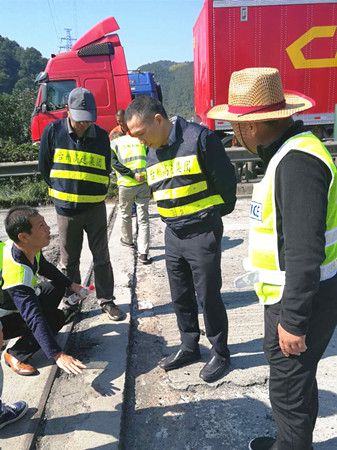 綜合督查組成員趕到養(yǎng)護(hù)攻堅項目施工現(xiàn)場,開始了當(dāng)天的督導(dǎo)、協(xié)調(diào)工作,當(dāng)場指出發(fā)現(xiàn)的問題,提出整改意見。