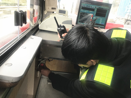 圖為工作人員自查崗?fù)?bào)警器 此外,工作人員對(duì)收費(fèi)區(qū)域內(nèi)的消防、交通、崗?fù)ぴO(shè)施設(shè)備,以及票證、通行費(fèi)等安全情況進(jìn)行了一次自查,確保安全用電,做好消防和防盜措施,并對(duì)當(dāng)班收費(fèi)員進(jìn)行現(xiàn)場稽查,檢查大家在當(dāng)班期間的崗?fù)きh(huán)境是否衛(wèi)生,臺(tái)面是否整齊,著裝是否統(tǒng)一,有無佩戴上崗證,儀表舉止是否規(guī)范,文明用語是否親切,以及抽屜大額現(xiàn)金有沒按規(guī)定放入保險(xiǎn)箱等。大家的合力檢查和相互配合,為春運(yùn)安全暢通、防寒防凍工作提供了強(qiáng)有力的保障。 陳瑩