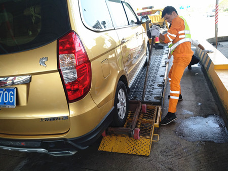 上圖為施救人員拖車現(xiàn)場
