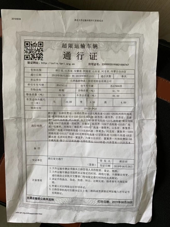 圖為該車通行證 在此,筆者提醒廣大司機(jī)朋友們,一定要合法裝載,避免超限超載。高速公路現(xiàn)已實(shí)行黑名單制度,違法超限超載運(yùn)輸車輛將被納入“黑名單”,如未及時(shí)處理將禁止其駛?cè)敫咚俟贰?/span> 楊雅芬