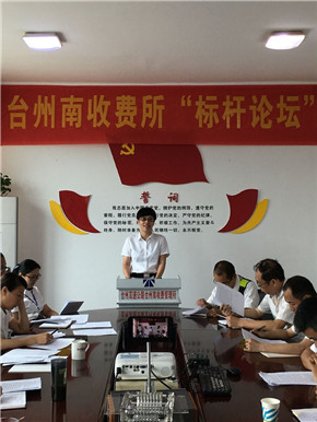 為傳播先鋒模范正能量,營造良好的工作氛圍,5月24日上午,臺州南收費所舉辦了第一期“標桿論壇”活動。此次上臺的標桿由班組推薦群眾基礎較好,綜合表現優秀的班員作為所內學習對象。 活動上,各標桿用最樸實地語言講述他們成績背后的汗水,而這些汗水匯聚成同一個特點:愛崗敬業。征費一班的王鋒兢兢業業,堅守平凡崗位,勤業務、強技能,任勞任怨二十載;征費二班的項丹穎,入職時間不到兩年的收費新手,憑著年輕人一股不服輸勁兒,腳踏實地,成為文明服務上的佼佼者;征費三班的應文霞,是臺州南收費所的微笑“常青樹”,敢于挑戰自己,本著“以情換心”的態度贏得過往司乘的交口稱贊;征費四班陳華,工作熱情飽滿、工作責任感強,展現了一線員工良好的職業操守;收費老班長陸冰,用豐富的工作經驗和勇于擔當的精神,以自己的模范行為影響著班組成員,帶動整個班組積極向上,成為優秀班組的“三連冠”。