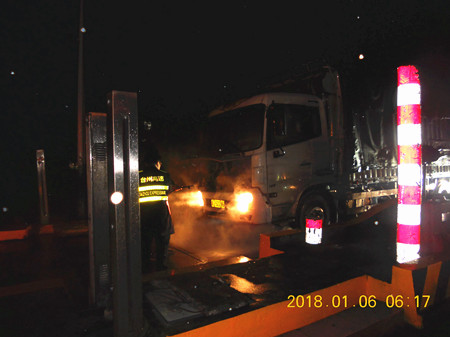 1月6日,一輛車牌為J52286的貨車著火,在收費員楊丹妮的應急救援下,成功控制住了火勢,沒有造成重大損失。 當天凌晨6:18,天還未亮,溫嶺西收費所還沉浸在一片安靜中,突然,收費車道上傳來一陣急剎車的聲音,收費員紛紛從倦意中驚醒。一輛車牌為浙J52286的貨車停在了收費車道上,駕駛員從駕駛室直接跳下車跑到收費窗口,急促地喊道:“有滅火器嗎?有滅火器嗎?車子著火了。”