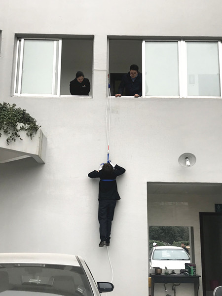圖為高處逃生演練現(xiàn)場 理論培訓(xùn)結(jié)束后,溫嶺西收費(fèi)所隨即開展實(shí)地逃生演練,讓員工學(xué)習(xí)使用逃生繩從高處逃生的技能。在蔡教官的指導(dǎo)下,一名收費(fèi)員大膽地自我推薦,主動(dòng)嘗試此自救方法。 一切準(zhǔn)備就緒,該收費(fèi)員迅速爬上窗戶,利用逃生繩小心地沿著墻壁下滑,并順利落地。教官最后根據(jù)演練情況作點(diǎn)評(píng)。 此項(xiàng)技能有助于在火災(zāi)時(shí)多開辟一條逃生通道,減少人員傷亡。 通過此次全面的培訓(xùn)演練,溫嶺西收費(fèi)所將全力共抓消防安全工作,排除各類隱患。 鄭霞霞