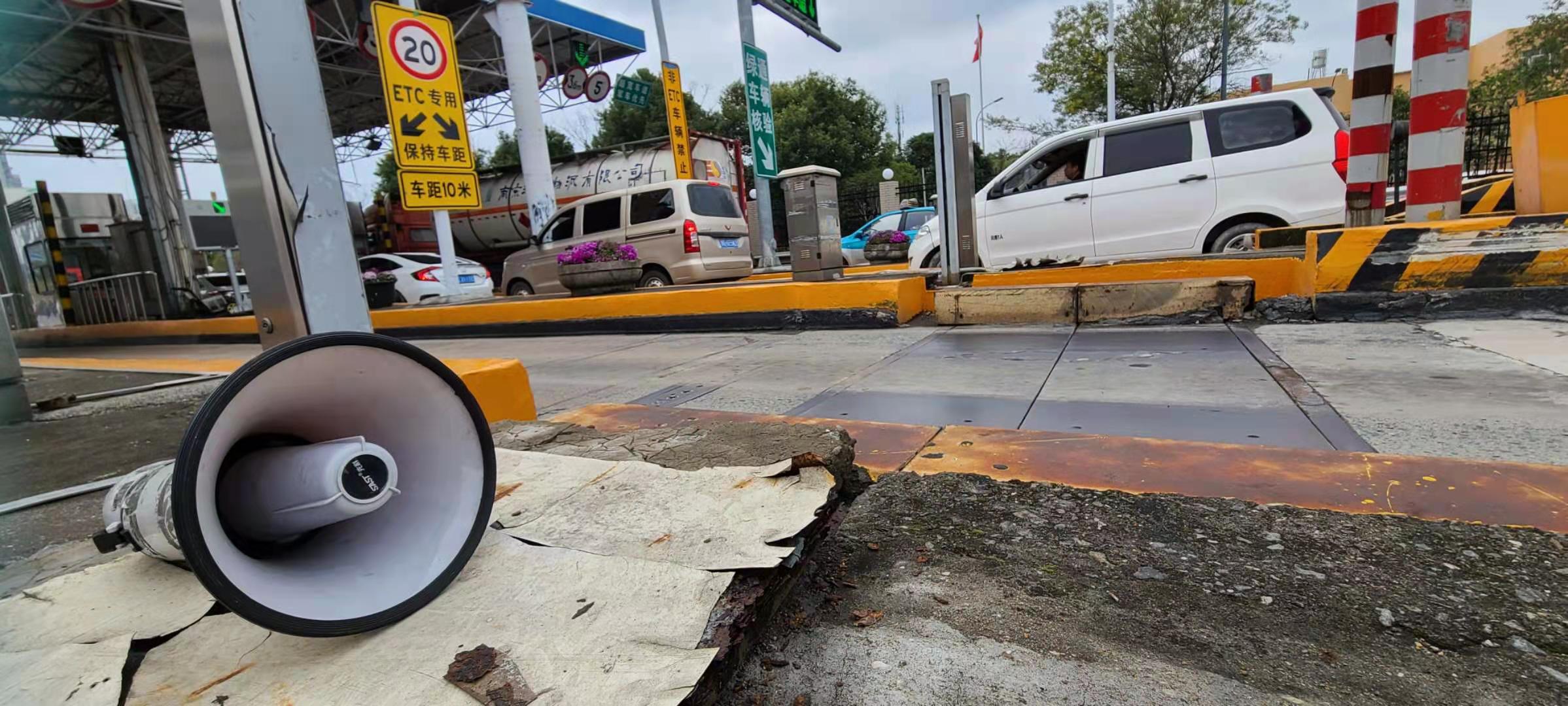 “由于最近車流量比較大,排隊等待支付的司機請?zhí)嵩鐪蕚洮F(xiàn)金、支付寶或者微信……”近日,溫嶺西收費所出口處的司機每天都可以在固定的時間聽到這熟悉的聲音。原來這是該所正在播出的“加速小喇叭”廣播。