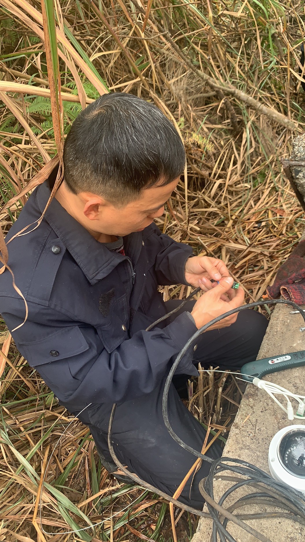 大溪嶺南高位水池地點(diǎn)在溫州地界,山體較高,攀行需要近一個(gè)小時(shí),金所得知情況后,立即帶著執(zhí)勤隊(duì)上山到高位水池檢查,他們背著工具箱,戴著手套、拿著柴刀,經(jīng)過(guò)一個(gè)小時(shí)的披荊斬棘來(lái)到南高位水池的井口,金所爬到井里進(jìn)行檢查,發(fā)現(xiàn)光纜和電線(xiàn)都被老鼠咬斷了,才導(dǎo)致圖像不能工作,當(dāng)場(chǎng)把電線(xiàn)接了回去,并回所準(zhǔn)備其他材料,明日再次登山修理。
