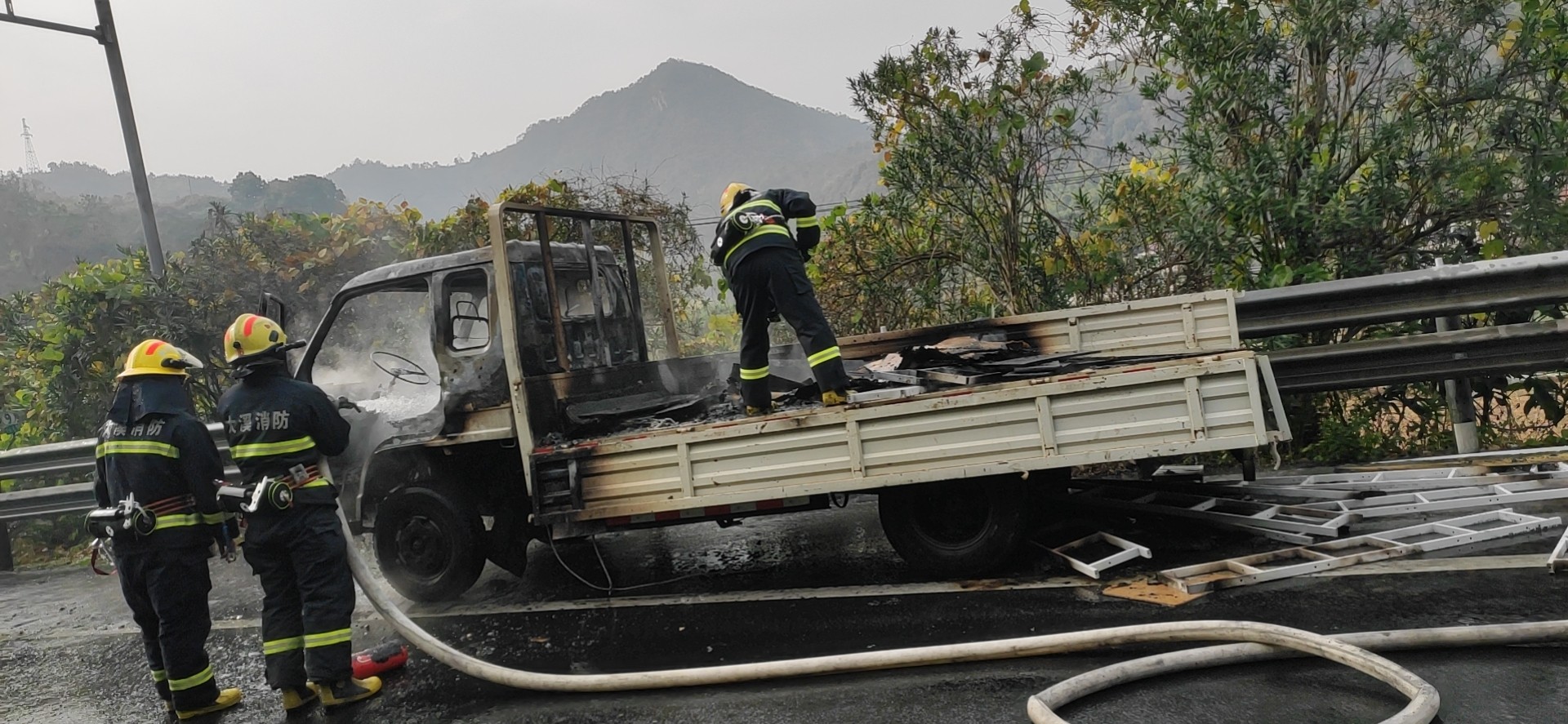 大溪嶺溫向隧道口發生貨車火災 |