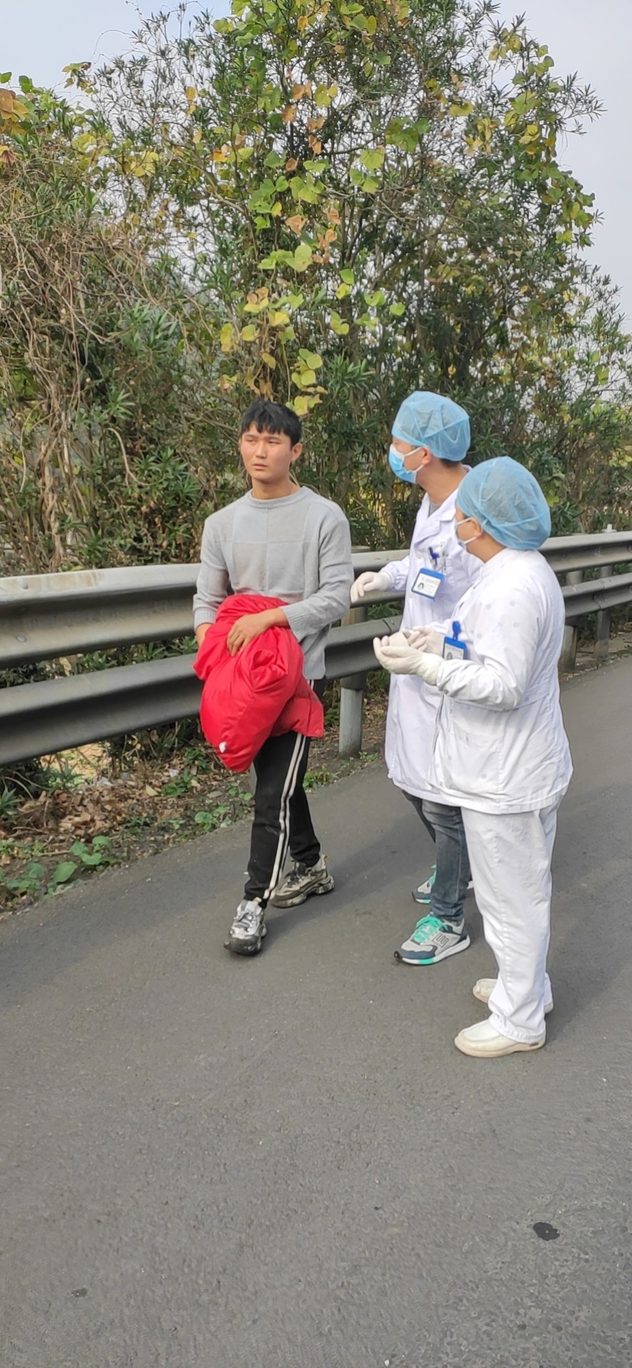 12月13日12:48中控發現溫向隧道入洞口600米處的情報板下濃煙滾滾,中控切換火災圖像至監控中心。并啟動火災報警系統,按下火災按鈕,由于著火點距離隧道北廣場最近的消火栓有500百米,隊員們出警時從倉庫里取出數只滅火器,由于車輛未實施封道,車輛一直在事故車旁邊呼嘯而過,給現場救援帶來難度,王宇鵬、湯寧光、陳幸帶著滅火器飛奔去滅火,巡邏車準備駛入事故車后進行封道預警。
