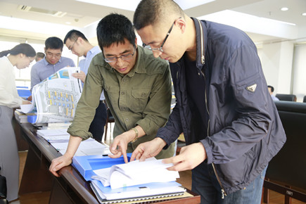 圖為考核組在檢查臺賬
