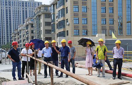 在結(jié)束了銷售展廳的行程之后,張建平又來(lái)到文鼎苑項(xiàng)目工地了解工程進(jìn)度情況。在施工現(xiàn)場(chǎng),他仔細(xì)詢問(wèn)施工方負(fù)責(zé)人目前工程的進(jìn)度以及面臨的困難,要求施工方要全力配合好整個(gè)項(xiàng)目的銷售進(jìn)展,加快工程進(jìn)度,保證施工安全,確保工程質(zhì)量。