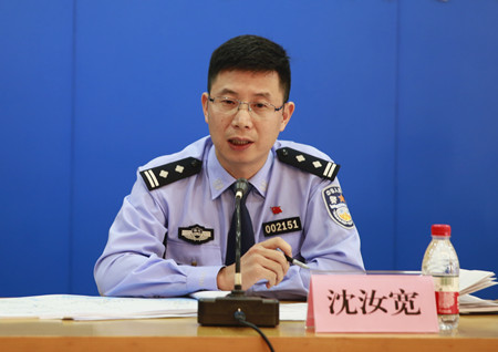 圖為浙江省公安廳高速公路交通警察總隊臺州支隊副支隊長沈汝寬解答記者疑問