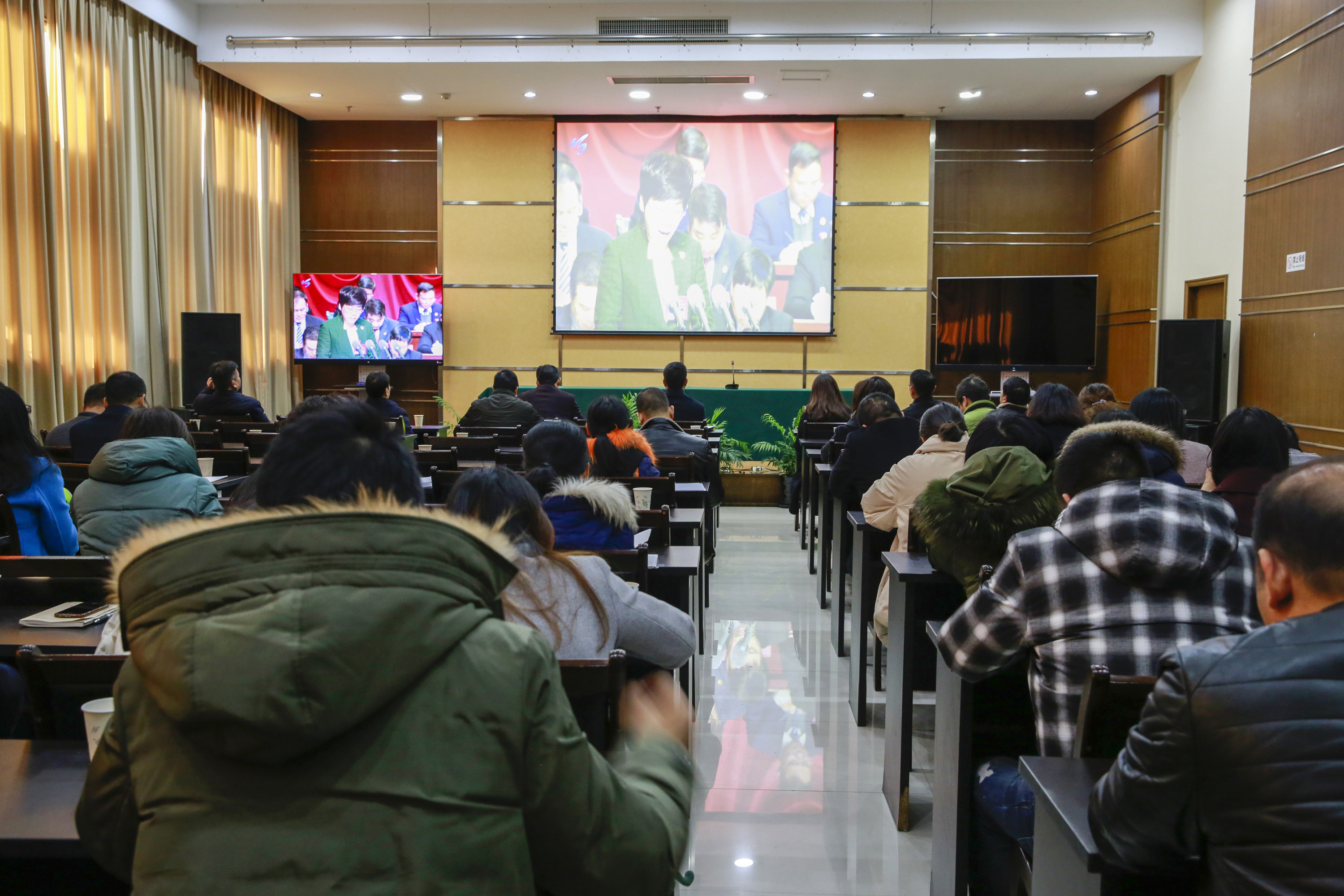 圖為集團全體干部職工收看現(xiàn)場