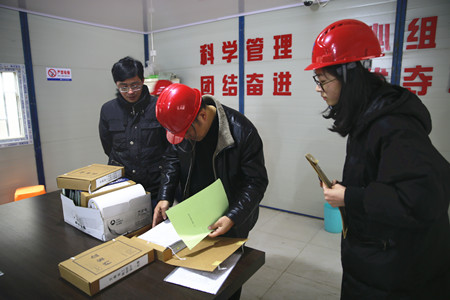 圖為檢查人員在文鼎苑項目部檢查內業資料 檢查組對大樓消防設施年度監測報告,電梯及消防維保記錄,大樓消防設備設施,大樓食堂食品衛生安全,消監控人員落實情況及操作證,保安夜間巡查、來客登記等內容進行了檢查,發現水泵房水箱開裂僅用簡易方式維修,存在較大的安全隱患。監控室部分監控系統畫面無樓層標號、食堂消防栓漏水、食品留樣不規范等問題。 在溫嶺水韻新村外墻維修和椒江文鼎苑項目工地上,檢查組對相關臺賬、施工安全管理制度、安全設施配備、責任制簽訂落實情況進行了檢查,發現文鼎苑工地安全生產責任書未按規范要求層層落實到崗到人,檢查組當場要求相關單位限時整改。