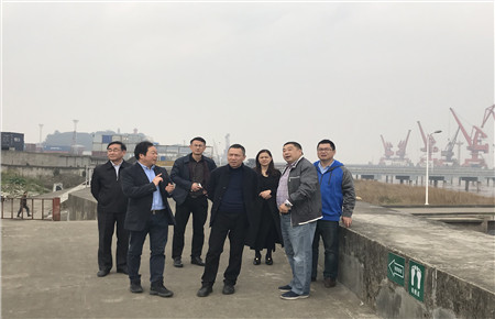 圖為張建平一行人在新碼頭建址考察 會后,在海門港埠總公司總經理王宏濤的陪同下,張建平一行人分別實地考察了新、舊碼頭現場。 顧維安