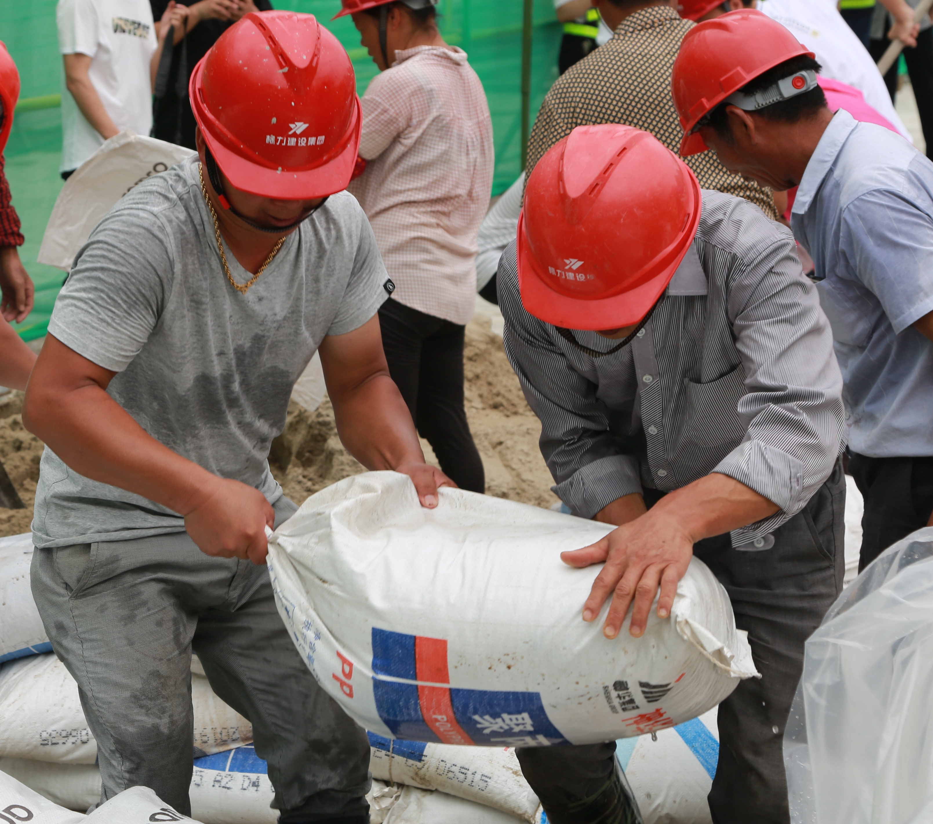 “第一組演練人員,準(zhǔn)備……”隨著集團(tuán)安全總監(jiān)項(xiàng)同富一聲令下,應(yīng)急演練的第一個(gè)科目沙包圍堰防洪開始,應(yīng)急搶險(xiǎn)小組人員和房產(chǎn)施工單位代表隊(duì)聽到指令后立刻趕到用沙包圍成的兩個(gè)大水池附近。