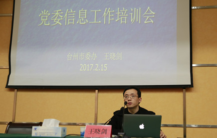 圖為市委辦信息處王曉劍處長在會(huì)上授課