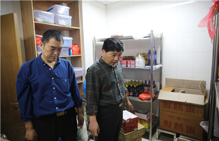 圖為集團安全總監(jiān)項同富檢查食堂衛(wèi)生