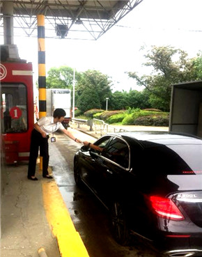 這是維養中心首次啟動“一崗雙職”收費新模式,通過外接和配置相關設備,實現一個崗亭同時承擔發卡和收費雙職能,大大減少了車輛等待時間。