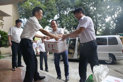 圖為集團副總經(jīng)理陳保衛(wèi)、羅小將送清涼現(xiàn)場