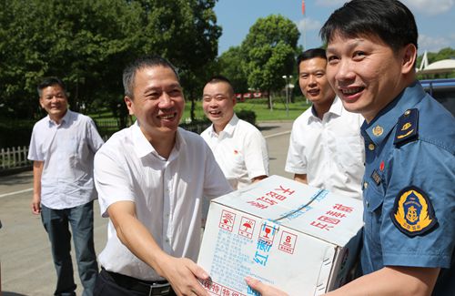 圖為集團副總經(jīng)理章海峰送清涼現(xiàn)場