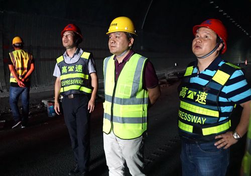 李飛泉一行在詳細了解了該項工程施工進展、組織實施情況,以及建設中碰到的困難和下步計劃安排后,充分肯定了各方在此次改造中付出的努力。李飛泉指出,大溪嶺-湖霧嶺隧道改建工程情牽八方,它不僅是一項重大民生工程,亦是響應省局隧道安全風險防控指示。該項機電改建項目任務重、工期緊,各方務必要嚴把施工節點,進一步明確目標,推進各項施工進度,在安全、保質的前提下爭取早日完成改造。李飛泉強調,要嚴格把好質量關、安全關,緊抓細節管理、安全生產標準化管理,發現問題及時整改,把工作做到位,做扎實。