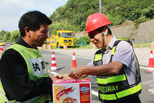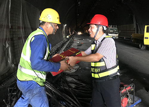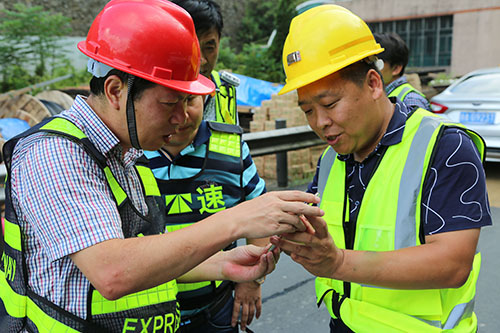 8月20日,已經(jīng)是三伏天的尾聲了,雖然經(jīng)過連續(xù)多個臺風(fēng)的洗禮,然而天氣依然炎熱。集團總工程師江輝心系一線,在工程部負責(zé)人的陪同下,深入大溪嶺-湖霧嶺隧道機電改造項目工地現(xiàn)場,慰問正在高溫中奮戰(zhàn)的一線施工人員。