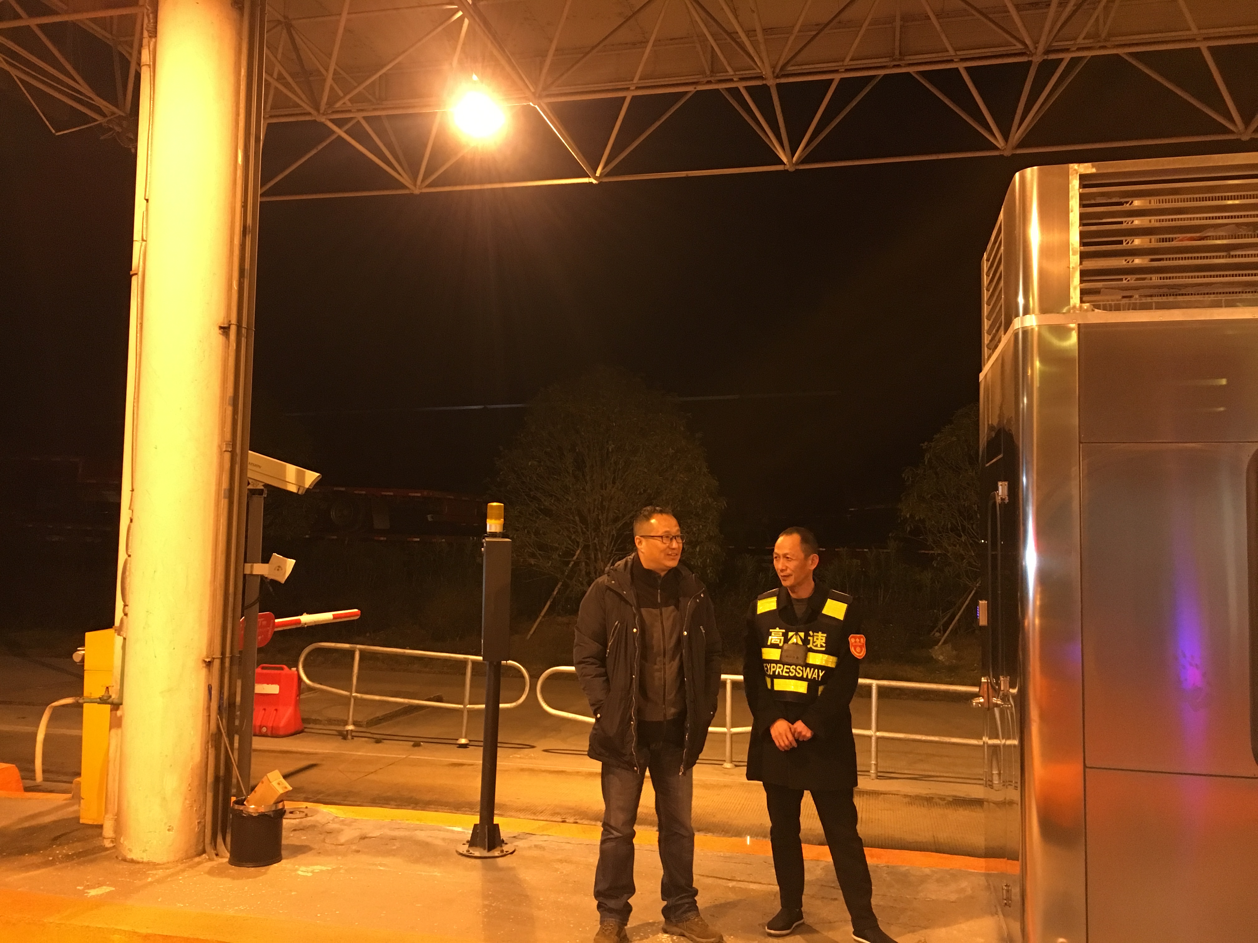 再過一個小時,即將迎來節假日7座及以下小型客車免費通行時間,23日晚23:00,公司副總經理章海峰到集團沿線臺州南收費所,檢查了解該所車輛通行情況。