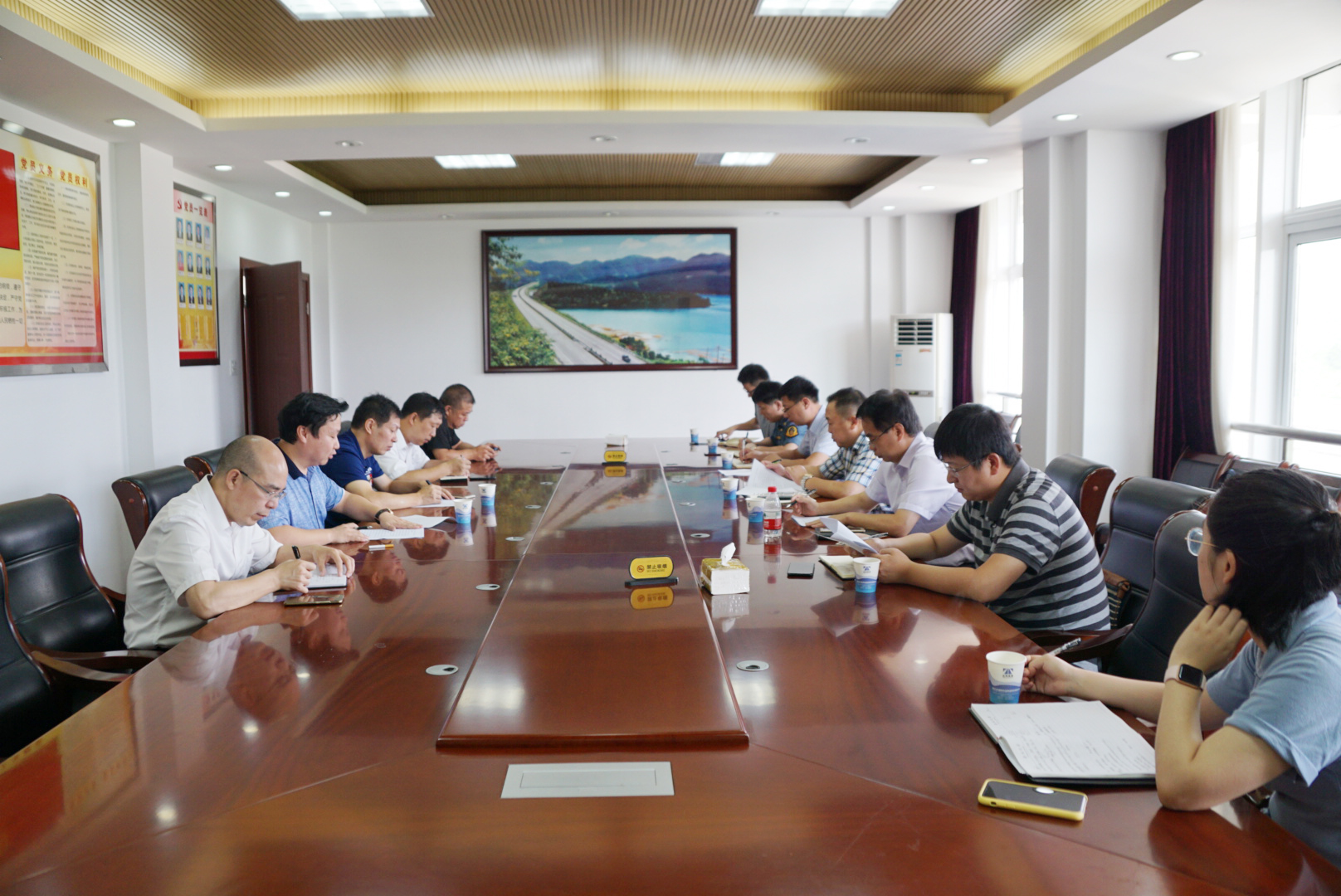 86午,市公路局局長(zhǎng)馬德勝一行在高速集團(tuán)總工程師江輝的陪同下對(duì)公司路段防汛、防臺(tái)、防旱及養(yǎng)護(hù)工作進(jìn)行檢查并召開(kāi)會(huì)議。