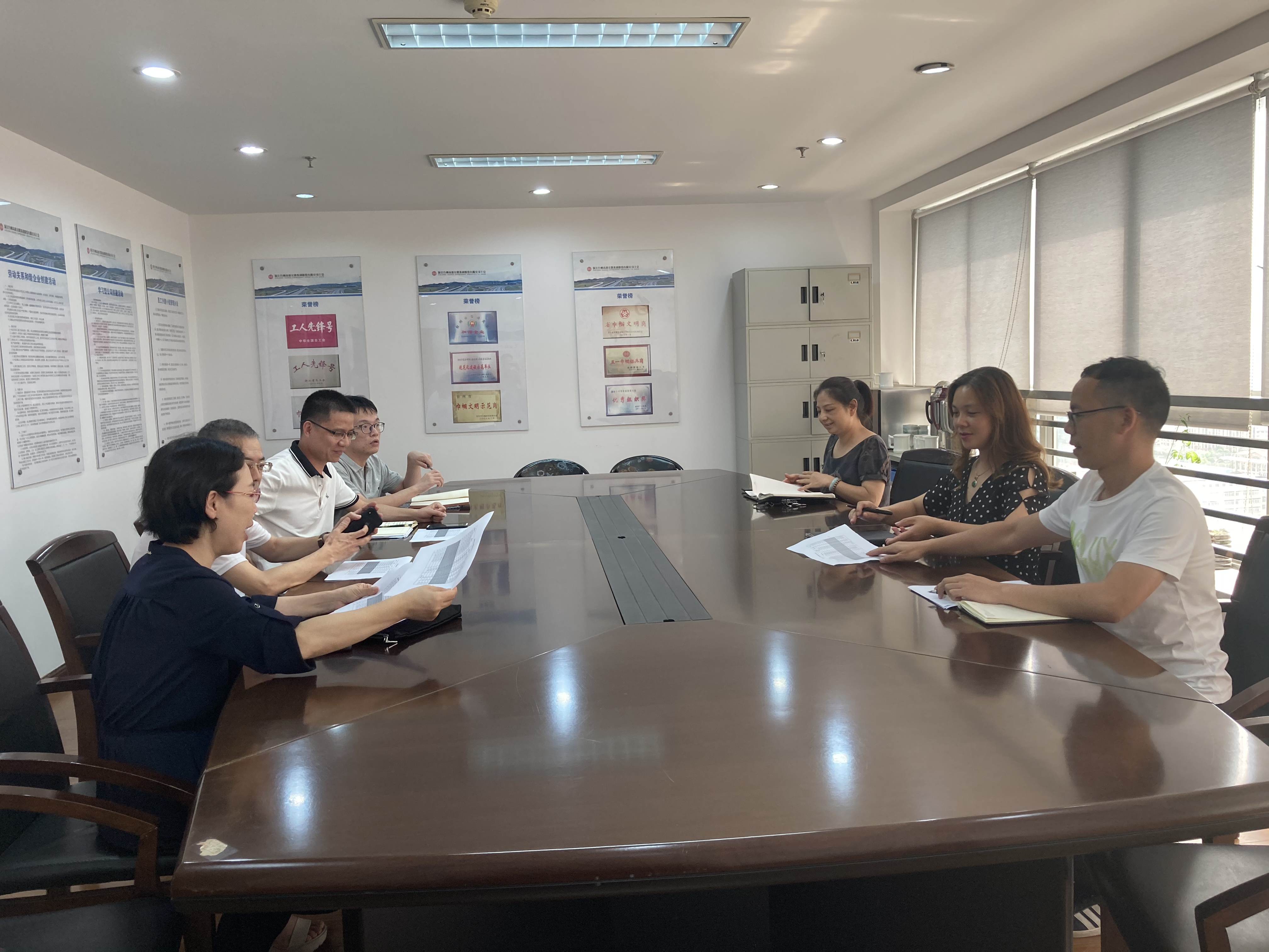 810日上午,臺州市國資委產權管理處處長胡斌帶領臺州市國有資本運營集團相關人員就債券發行事宜到公司進行交流。公司總會計師章彩霞以及結算中心有關人員參加現場交流。