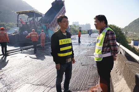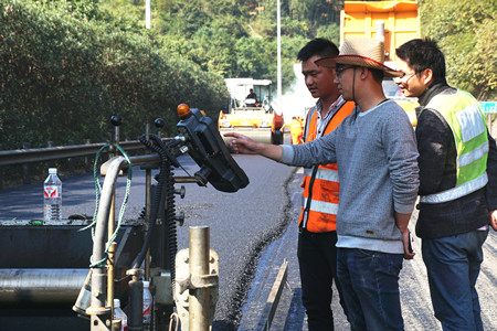 “路面銑刨有時(shí)會(huì)出現(xiàn)銑刨不完全存在夾層的現(xiàn)象,如不清理干凈則會(huì)嚴(yán)重影響攤鋪后路面的平整度。”楊金梁介紹道,所以攤鋪時(shí)每道工序,他都時(shí)刻緊盯,確保攤鋪的路面不存在任何瑕疵。