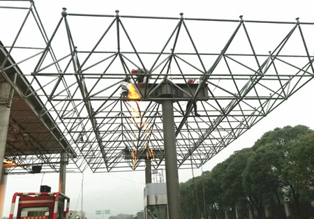 溫嶺西收費站位于大溪鎮大石一級公路起點處,改造前,收費站為四進六出十個車道。因臺州市區僅有一條南北縱向高速,玉環市、溫嶺市的車輛都要從溫嶺西這個收費站進出高速,造成該站每日出入車流量巨大。為了有效緩解出口車輛排隊等問題,集團提前謀劃,啟動溫嶺西收費車道拓寬工程。 而這項工程中最重要的就是鋼結構網架吊裝,鋼結構網架長18米,寬9.4米,重達15噸。為了減少集團通行費的損失和保證吊裝過程的安全,工程養護部與施工單位合力研究,專門編制了專項吊裝方案,動用了兩臺25噸吊機。