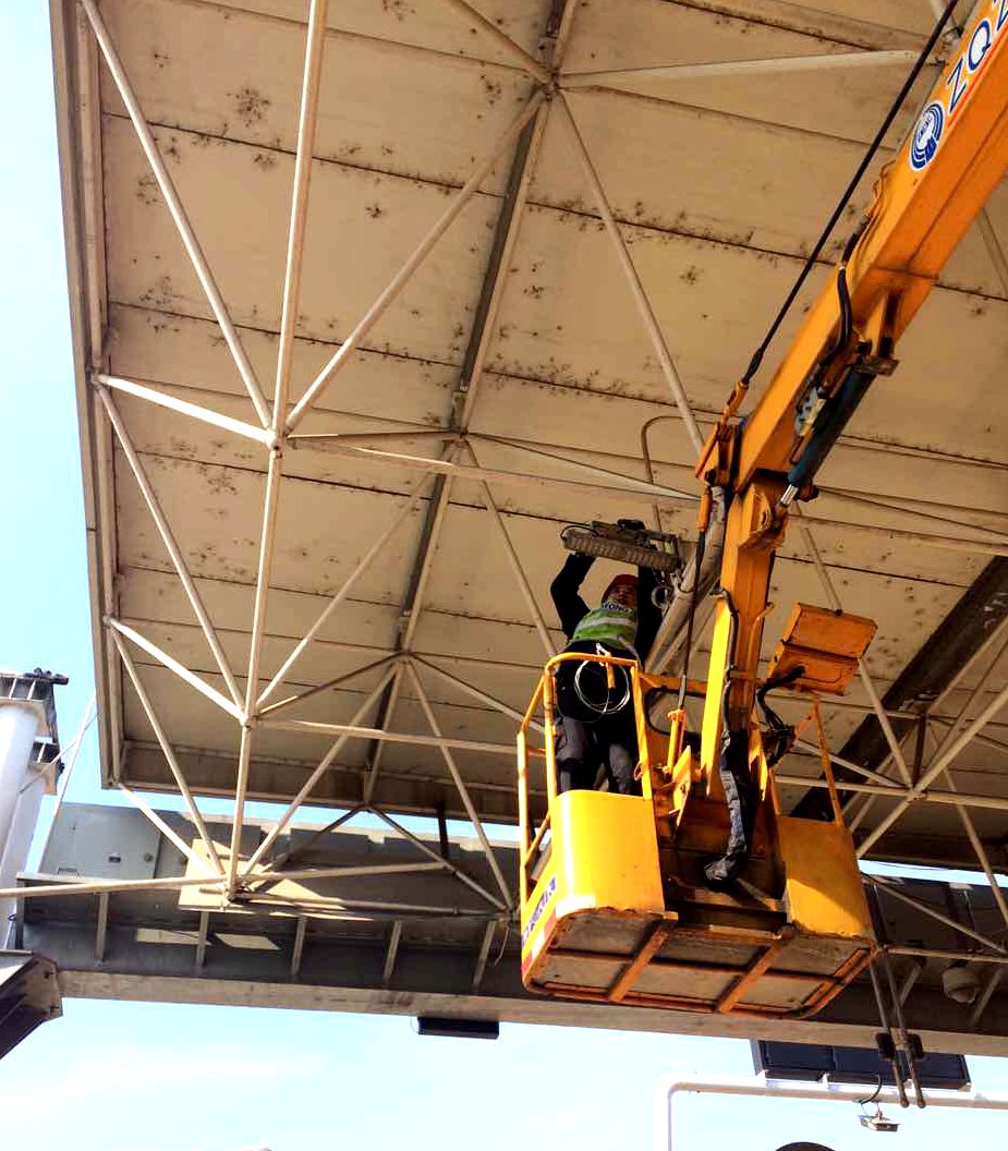 在完成稱臺調節后,針對照明亮度直接影響夜間分流安全的實際情況,技術人員又對內外廣場路燈及收費車道頂棚燈進行通電檢查,并對檢查中發現的三盞亮度不足LED進行了整體更換,確保收費區域無一照明死角。