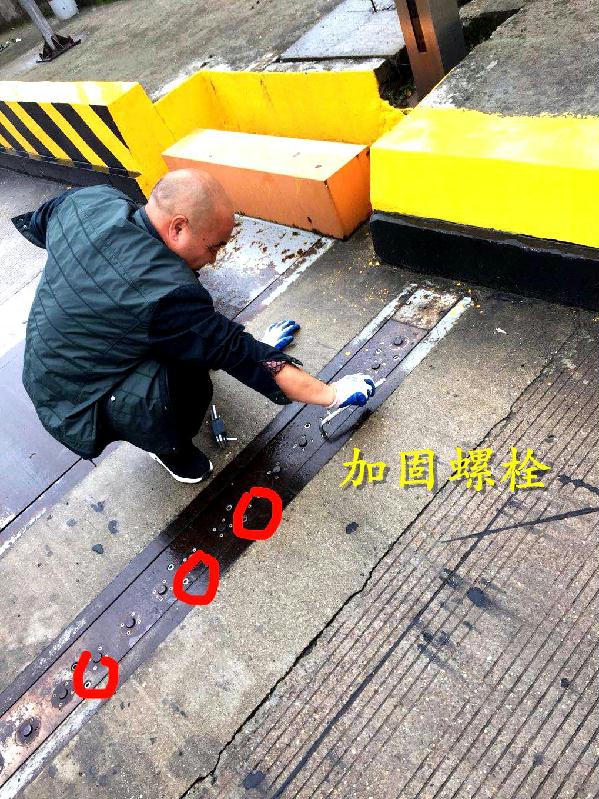 期間在臺州南收費所發現有兩個車道出現異常,即當重型車輛通過時,輪檢鐵板和稱臺出現不正常晃動情況。根據以往經驗,此情況如不進行及時維修,對車輛計重將造成嚴重影響。對此,技術人員不僅對鐵板上每顆螺栓都進行了認真細致的重新加固,之后不厭其煩對每個稱臺限位都進行了多次調整,直至將晃動幅度控制在正常范圍內。