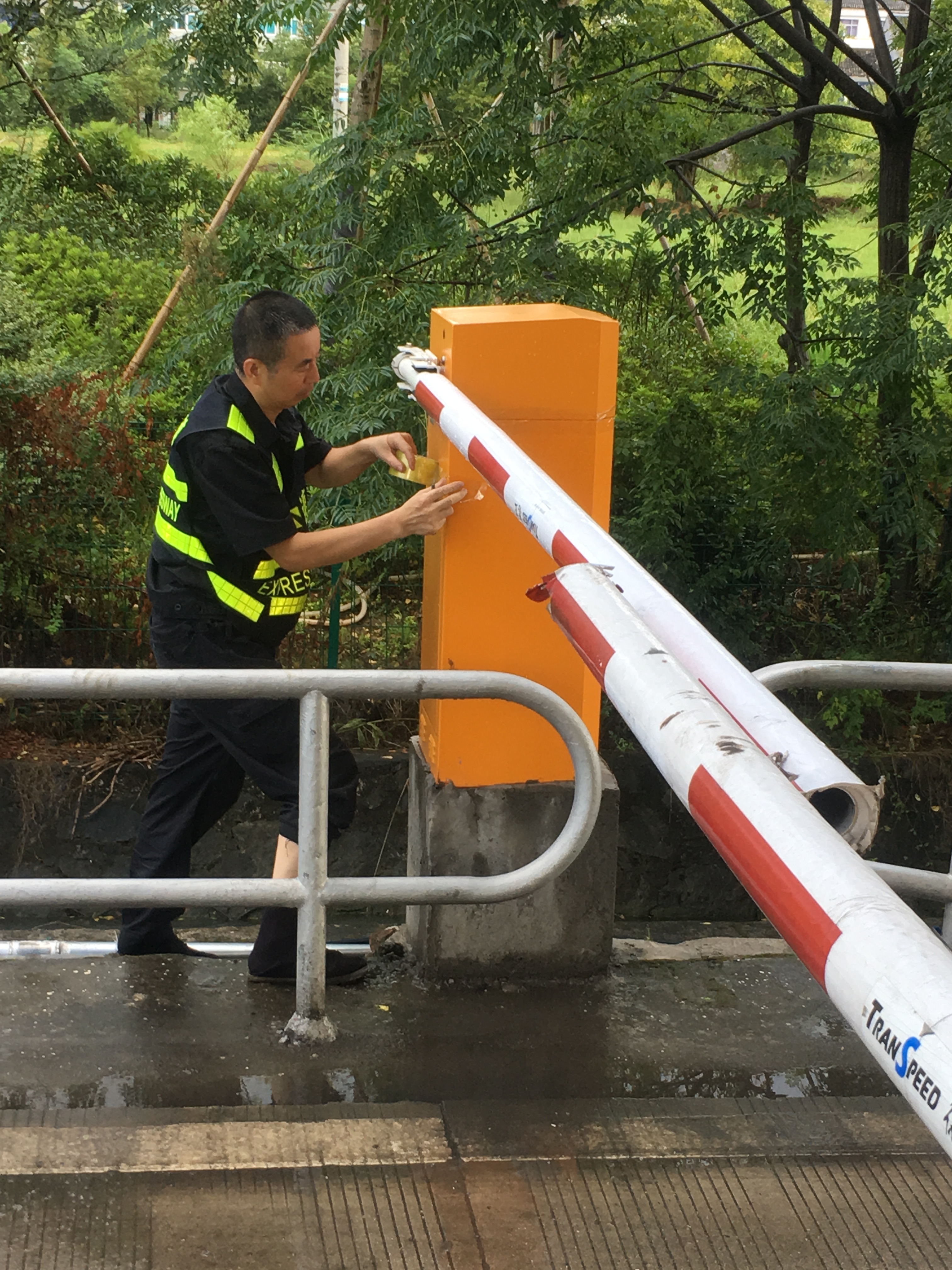 增強機電設備防水措施。集團收費站有很多機電設備直接安裝在戶外,因外層有開關柜保護,一般雨水是無法滲透的。可一旦遇上臺風雨等惡劣天氣就很難確保內部設備不會被打濕,尤其是計量柜里面的計重設備,一旦短路損壞會立即造成車輛擁堵。因此,剛完成高桿燈下降工作中心隊員顧不上休息,又馬不停趕赴收費所將計量柜、欄桿機等重要設備用封帶紙進行密封處理,不漏過任何一處可能進水的地方,大大增強了這些設備防水性能。