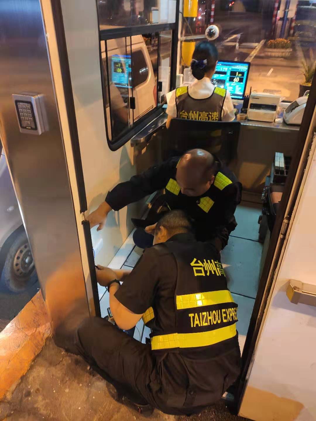 在各收費站,維養中心人員一一檢查了各個崗亭收費主機的散熱情況,排查各配電柜有裸露或接觸不良的導線防雷接地是否滿足要求加強對計重稱臺、輪檢器、欄桿機等設備檢查維護以及對沿線路面情報板、攝像頭增加巡視檢修頻率,確保這些設備可視可控。