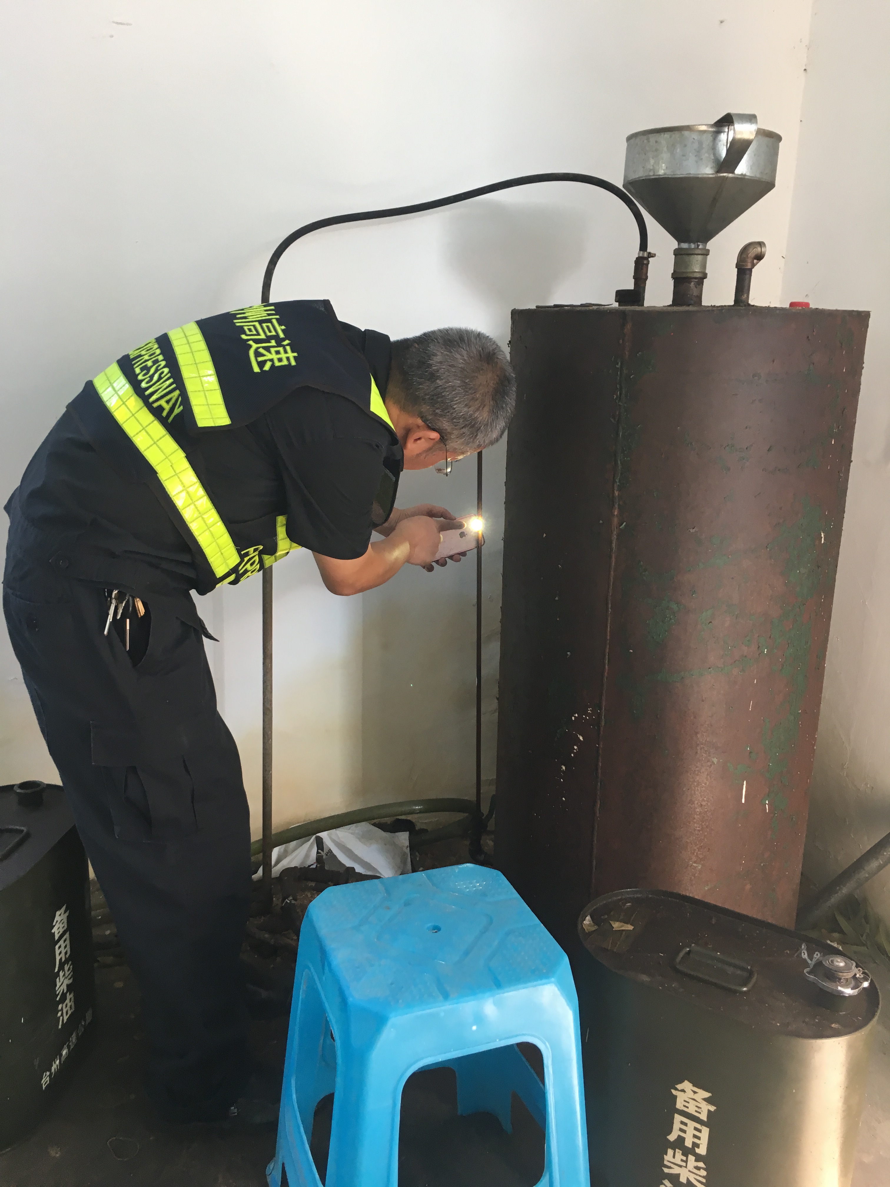 臺州南收費站檢查下欄桿機情況,試發下柴油發電機。