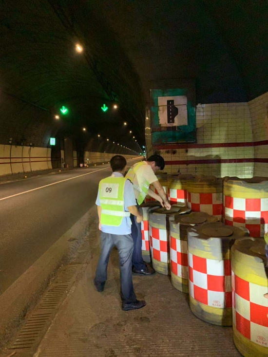 為改善行車環境,保障隧道安全暢通,沿線隧道所工作人員重點檢查了洞內火災報警系統、消防箱、滅火器、火災事故廣播等設施,仔細查看隧道洞口交通信號燈、安全出口等交通指示標志以及機電設施及照明設施是否正常運作。期間,維養中心更換塘嶺隧道左右洞共18盞路燈燈頭,保證了洞口照明亮度。