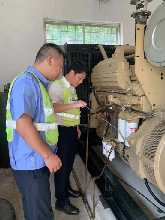 圖為工作人員在檢查發電機柴油