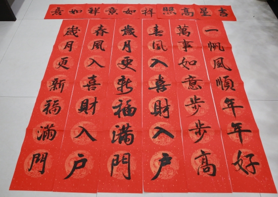 本次活動由集團辦公室牽頭組織,以集中書寫和分開書寫相結合的方式進行。參與者在百忙之中抽出自己的業余時間,積極參與到活動中來,共同書寫500多幅春聯作品。春節臨近,集團全體員工和集團兩個結對村的100戶村民都將收到暖暖的“送春聯”祝福。