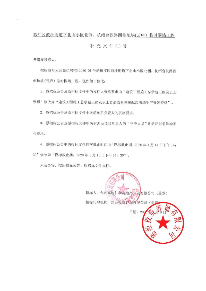 椒江區(qū)葭沚街道下北山小區(qū)北側(cè)、杭紹臺鐵路西側(cè)地塊(云廬)臨時圍墻工程補(bǔ)充文件