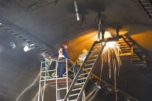 另一處作業面,負責焊接的王師傅拿著器械,正目不轉睛地盯著焊接面。“焊接對精度技術要求很高,焊縫還要檢測,得一次成型,否則施工就不合格?!睆氖露嗄觌姾腹さ乃3Q嵬忍郏湎隆吧砑病保安贿^時間久了也就習慣了,堅持就是勝利。”王師傅依然很樂觀地看待自己的工作。