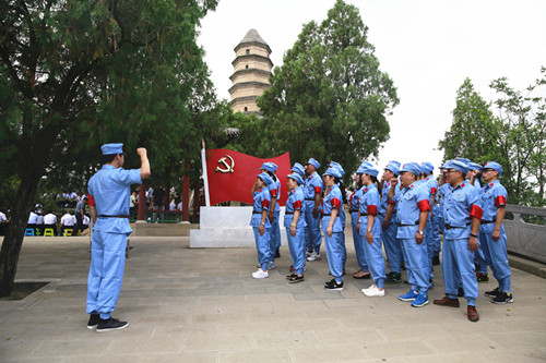 不顧前一天的舟車勞頓,第二天一大早,黨員們整裝出發(fā),在紅色旗幟引領(lǐng)下,頂著烈日,一路步行到達寶塔山山頂。“手抓黃土我不放,緊緊兒貼在心窩上。幾回回夢里回延安,雙手摟定寶塔山。”綜合支部的小周對著寶塔山,情不自禁地大聲誦讀起賀敬之的《回延安》。黨員們在巍巍寶塔下高舉右拳,用鏗鏘有力的聲音宣讀了入黨誓詞,對于大家來說,重溫入黨誓詞是共產(chǎn)黨員表達自己為共產(chǎn)主義奮斗終生的最佳方式,黨員們的心靈再次受到震撼和洗禮。