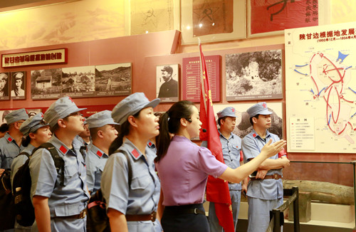 接下來的學習參觀行程安排得非常緊湊,大家冒酷暑頂烈日,一路顛簸,從楊家?guī)X到梁家河再到南泥灣,低矮簡陋的窖洞里,一代偉人的足跡就在眼前,歷史的回音縈繞耳邊,蕩氣回腸的故事撼人心魄;革命紀念館里,面對一張張圖片和一件件歷史文物,大家駐足觀看,思緒不由自主地回到那戰(zhàn)火紛飛的抗日戰(zhàn)爭和解放戰(zhàn)爭,回到艱苦樸素和激情燃燒的延安時代。在解說員的帶領(lǐng)下,所到之處,大家認真聽講解,看到振奮人心的畫面時,大家紛紛拿出手機拍下來留作紀念。