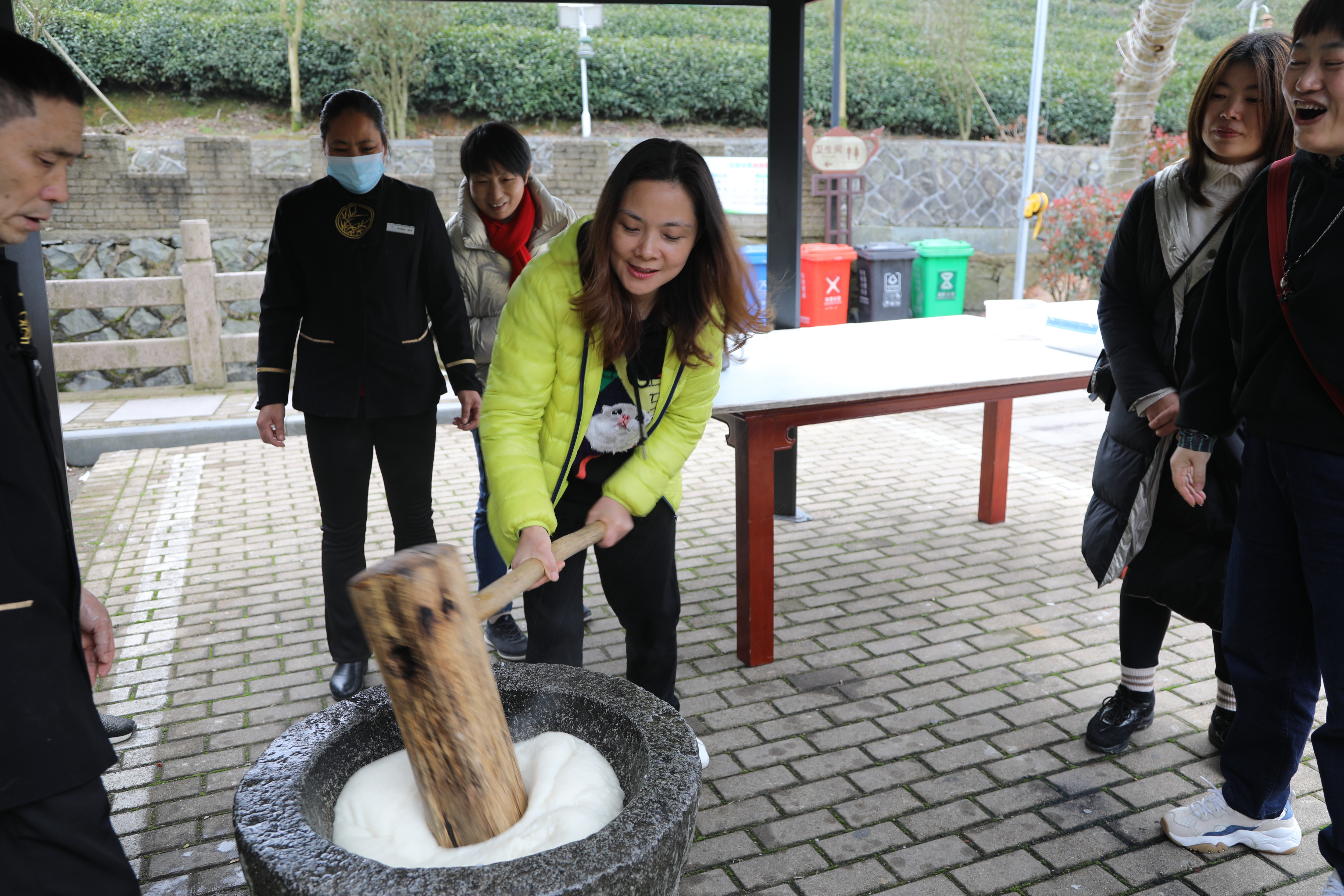 “一、二、三,一、二、三……”飯后,女同胞們體驗傳統“搗麻糍”,圍著石臼從上往下用力錘。搗麻糍,捏麻糍,嘗麻糍……大家邊聊天邊制作麻糍,氣氛其樂融融。 此次活動不僅豐富了女職工的業余生活,緩解了緊張繁忙的工作壓力,更重要的是促進了友誼,加深了感情,使各位女職工充分感受到了節日帶來的喜悅和快樂,最大限度地提高女職工的幸福感,激勵大家以更加飽滿的熱情、最佳的狀態投入工作,更好地發揮“半邊天”作用,為公司發展和建設做出更大的貢獻。 曾莉莉