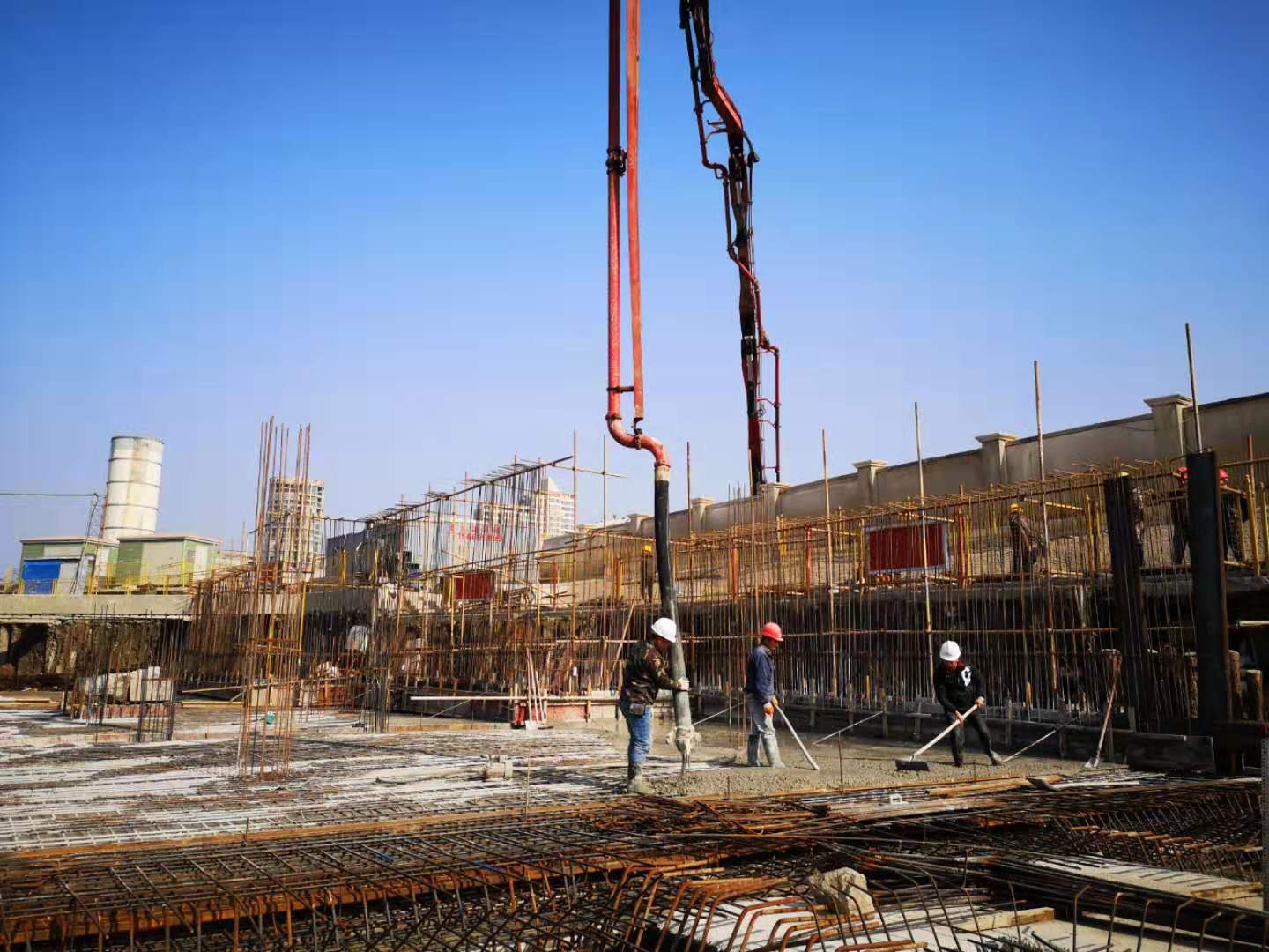 圖為施工現場 2019年是玖璽逸墅項目建設年,當前,項目已進入地下室土方開挖,局部底板開始澆筑。 該項目上半年受多雨天氣和商品混凝土供應短缺等影響,下半年又受黃巖當地無消納場等政策影響,樁基施工完成后一度處于停滯狀態。時間一點點流逝,九月份黃巖房地產協會關于解決土方消納問題的報告又石沉大海,房產公司經營班子看在眼里、急在心里。時間就是金錢,效益就是生命。房產開發涉及大體量的資金投資,每天的成本均不是小數目。縮短開發周期是房產的主要效益點。 等待不是我們的風格,行動才是我們的作風。房產公司會同施工單位、土方單位多次一起想辦法,在給予施工方壓力的同時,房產公司主動直接和集聚區東達公司溝通消納問題,更是多次協調土方單位和施工單位之間的關系,各方通過土方短駁,土方跨區域外運、消納,土體分層次綜合利用,想盡一切辦法促進土方外運。土方單位和施工單位更是發揮自身優勢,克服車輛跨區域被扣、違規被查等問題,積極聯系相關部門,尋求理解與支持。總包單位也采取包時包干的激勵政策,經過多方努力,工程施工終于一步步恢復到正常的軌道上來。 進入11月和12月,為了搶抓工程進度,明和房產公司要求施工方全力以赴,開足馬力,進行年底大沖刺,搶占工程建設新高點,為后續銷售開拓更為廣闊的空間。 目前,施工正在全班上馬,早晚搶工,全速推進,工程管理人員隨時在場監管質量與安全,項目建設節節攀升。1號、5號、9號、12號樓正在綁扎鋼筋,2號、6號和10號樓已進入底板墊層施工,計劃15日前完成中央庭院以東樓幢土方開挖,力爭春節前完成B區商品房地塊全部土方工程和基礎墊層,局部樓棟達到二層面。 包啟曉