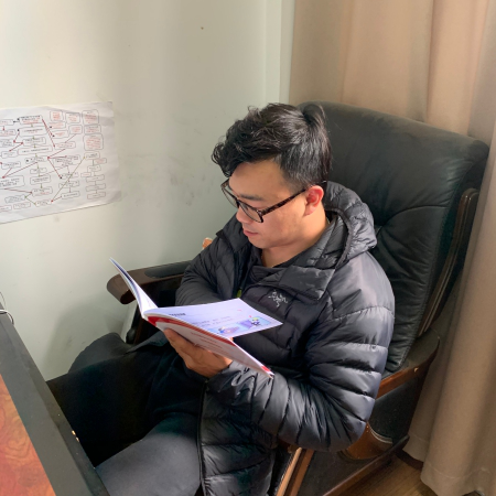 圖為員工翻閱宣傳冊