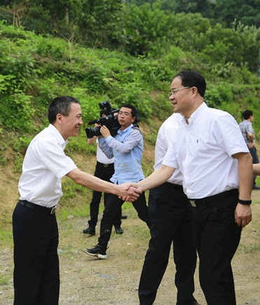 圖為市委書記王昌榮與公司總經(jīng)理張建平親切握手