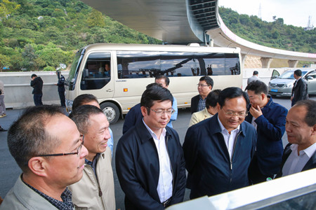 10月31日下午,市委副書記、市長張兵在督查內環路(黃巖段)建設時指出,內環路建設對促進三區協同發展、方便群眾出行意義深遠。各參建單位要咬定目標不放松,堅持不懈抓安全,全力以赴收好尾,按時保質完成內環建設任務。 副市長張加波,市政府秘書長林金榮,市發改委、市財政局、市建設局等相關部門負責人及黃巖區政府相關領導參加督查。集團公司副董事長、總經理張建平陪同督查。